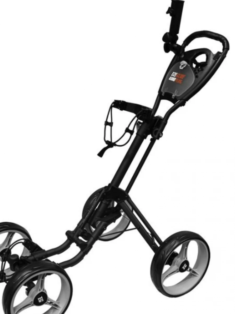 The Ezeglide Quad Plus Trolley is a premium 4 wheel push trolley. It comes with an easy foot operated mechanism reducing significant time spent in assembling the trolley. The adjustable handle height and bag bracket is designed to tailor to your needs. In addition, there is storage space for valuables and equipment.