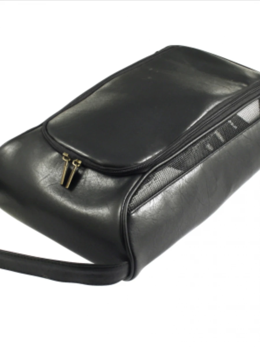 The long zips, carry strap and durable construction make this a great shoe-care accessory. It features air vents on the sides and bottom to allow moisture to escape, has a soft leather-like feel, and a zipped inner pocket.