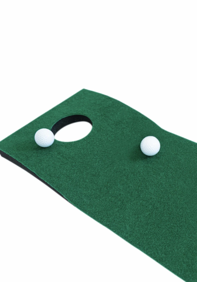 All the more reason to practice, better putting will lower your score dramatically. The Masters putting mat will help you achieve this. It is made from specially selected synthetic matting to ensure consistent roll and accuracy of the ball. It is raised at on end with a hole to give a real ‘on the green’ feel.